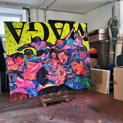 Die Serie „On The Brink“ von Götz Friedewald ist ein beeindruckendes künstlerisches Statement, das die Grenze zwischen Euphorie und Chaos, Ekstase und Abgrund erforscht. In leuchtenden Farben und expressiven Formen fängt der Münchner Künstler eine kraftvolle Energie ein, die den Betrachter unmittelbar in ihren Bann zieht. Die Bilder zeichnen sich durch ihre lebendige Dynamik und eine geradezu beängstigende Intensität aus, die sowohl faszinierend als auch verstörend wirkt.